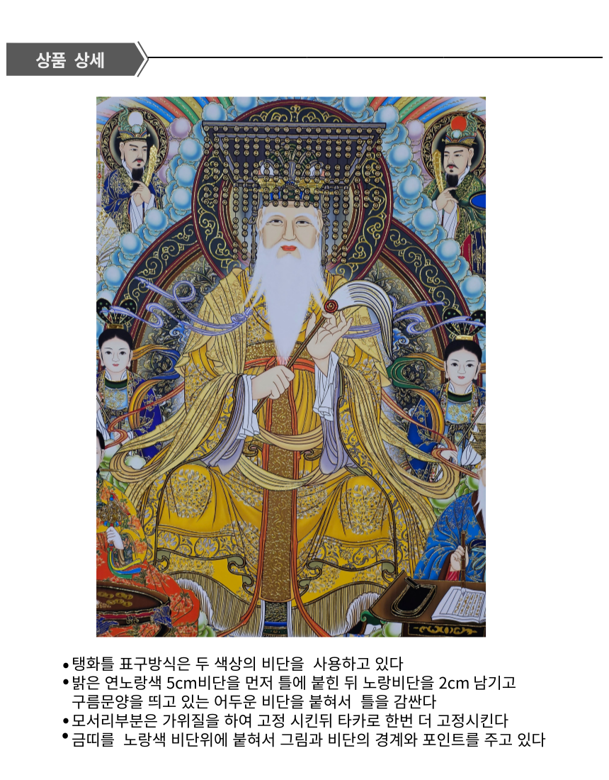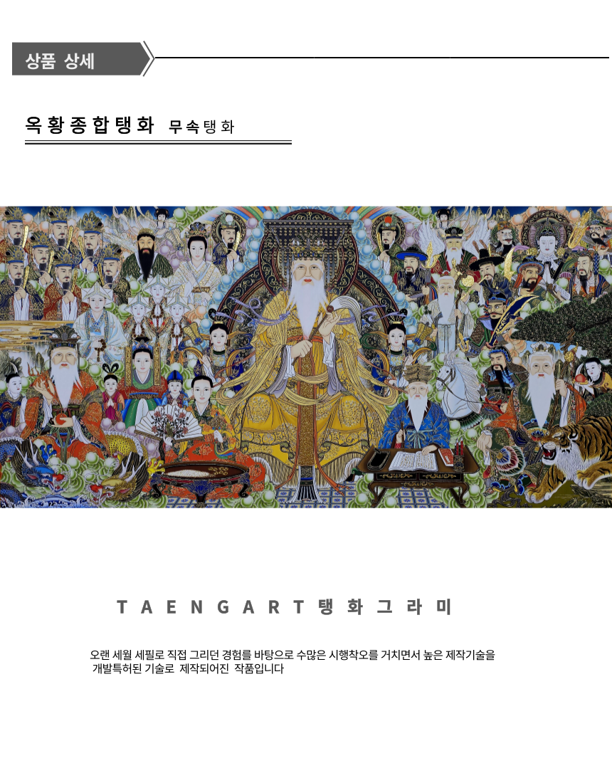 좌우의 여러신들이 옥황을 보좌해주는 구도감이 뛰어난 탱화입니다