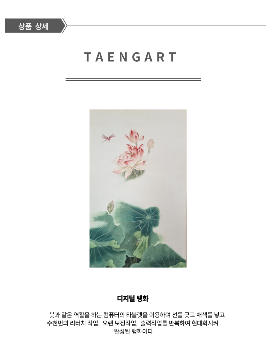 금분으로 바름질을 하여 그위에 돋움으로 바쳐주므로 흑탱화의 가치를 높여준다