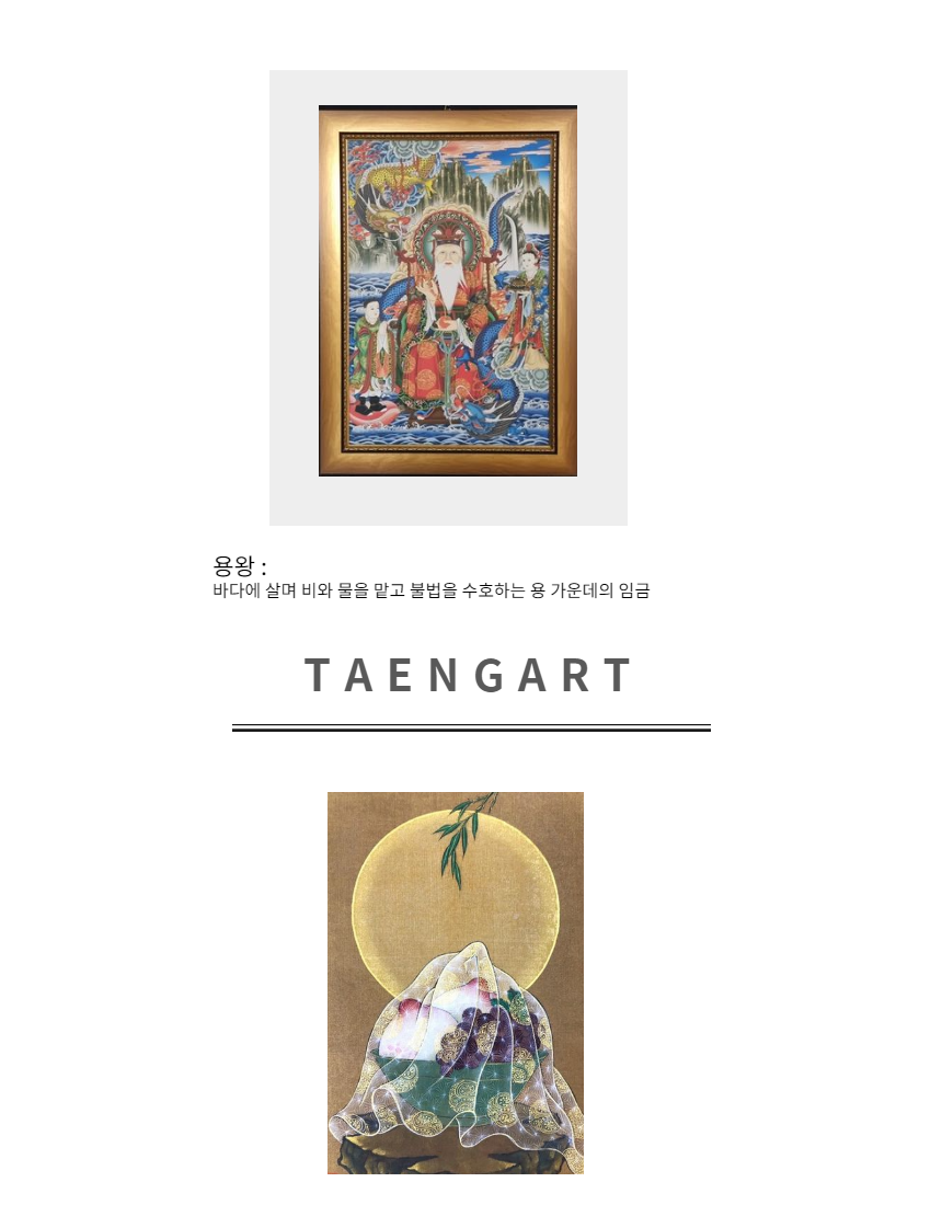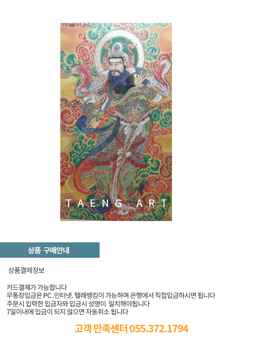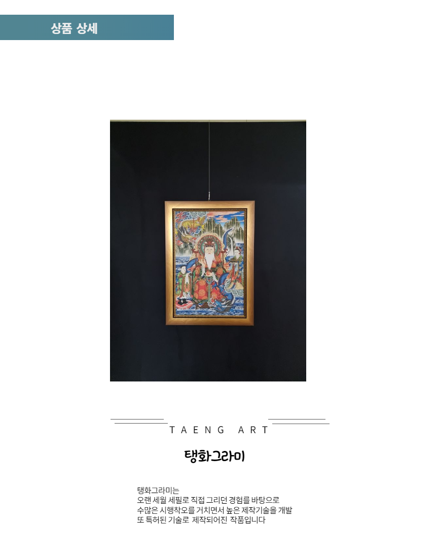 구도의 안정감,채색의 선명함,은은함 금빛의 돋움이 돋보이는 탱화입니다